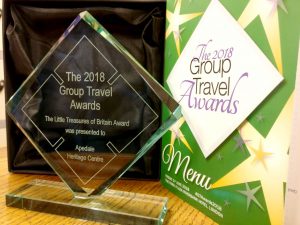 On Friday we were awarded the “Little Treasures of Britain” award at the 22nd Group Travel Awards, One of our trustees, Les, was on hand to receive this awards from the editorial team of Group Travel Organiser magazine at the awards ceremony at the Park Plaza Riverbank Hotel, London. the evening was attended by some of the big organisations in the travel and tourism industry such as Blenheim Palace, Disneyland Paris and P&O cruises.